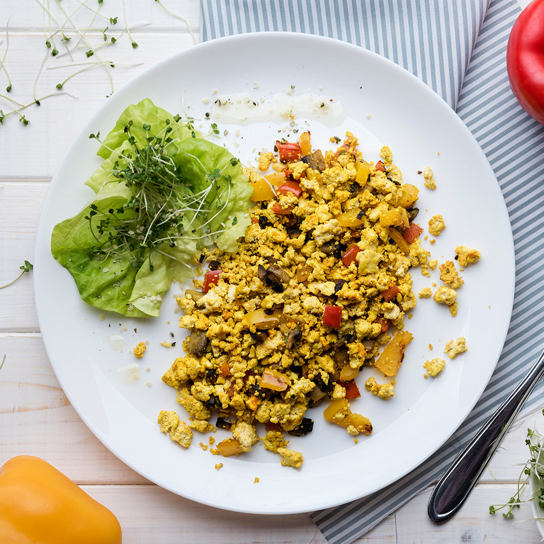 - Angkat dan sajikan tofu scramble hangat dengan roti gandum atau nasi merah.