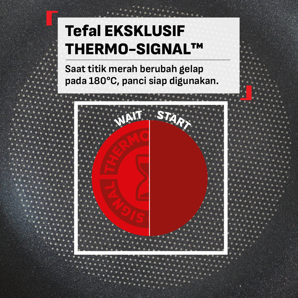 2. Memiliki Thermosignal sebagai penanda panas wajan. Bulatan merah di tengah akan berubah menjadi merah pekat ketika wajan sudah siap dipakai memasak.