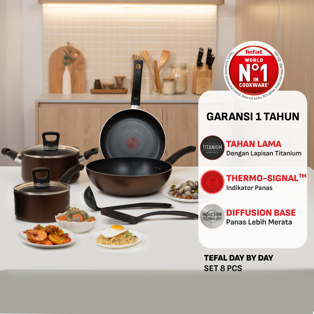Seri wajan yang didesain khusus untuk masakan Asia. Terbuat dari material berkualitas dengan lapisan titanium anti lengket, Tefal Day by Day Frypan juga mudah dibersihkan, baik dari dalam maupun luar. Dengan teknologi terbaru Thermosignal, Tefal Day by Day Frypan menjadi wajan pintar yang akan membantu anda mengetahui suhu ideal untuk memasak. Tefal Day by Day juga di lengkapi dengan Induction Technology, menjadikannya wajan yang dapat digunakan tidak hanya untuk kompor gas tetapi kompor keramik, listrik dan Induksi. Setiap hari jadi bisa memasak masakan yang luar biasa untuk keluarga anda dengan peralatan yang handal!